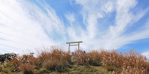 | 山頂の大鳥居に、秋空が綺麗だ |