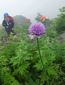 | 右も左もお花畑〜 汗で濡れるか、雨で濡れるか・・・ 雨は降っているが、風が無いので 雨具無しで歩いていた |