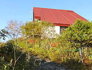 | 今日もい〜い天気 雲一つない! 同室の5人のうち、 2人はまだ暗いうちに出発 1人は自炊 高知労山の2人(今日もここで連泊)と私は、 6時からの朝食の予定 食べ終わっても、リフトは動かない 今日は平日なので、麓の始発は8時 ここのリフトが動き始めるのは 8時半頃だろうか? |