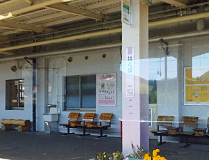 | 白馬駅に着いた 切符売り場は閉じられ、自販機のみ 待合室は開いていて コンビニも営業中 左 時刻表を見ると・・・がら空き! 以前は1時間に1本はあったような記憶 今は、通勤通学時間以外は 3時間に1本・2時間に1本・・・! タクシーの運転手さんが言っていた 「大糸線は不便になった」というのは このことだった 白馬が遠くなってしまった・・・ 以前は多治見駅で「しなの」に乗ると、 白馬まで直行の列車もあったというのに・・・ 右 白馬駅のプラットフォーム この時刻、お客は10名ほど |