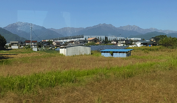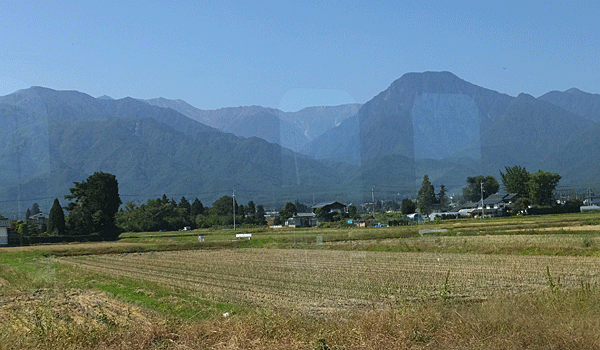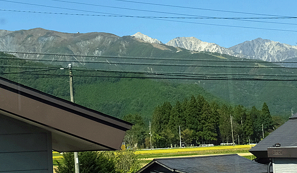 | 神城駅の手前から 白馬三山が見えた |