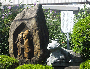 | 信濃大町駅のプラットフォームにあった道祖神 仲睦まじい様子がほほえましくてパチリ |