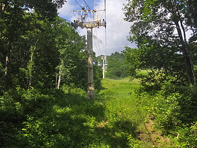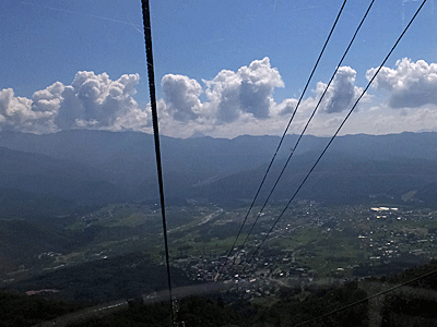 | 下界がどんどん遠くなるいったん降りて、 リフトに乗り換え ↓ |