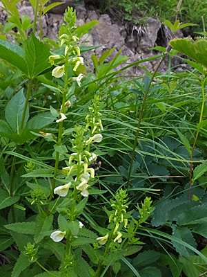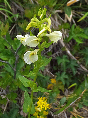 | エゾシオガマ:ハマウツボ科 薄黄色で、スクリューのようにねじれた花 |