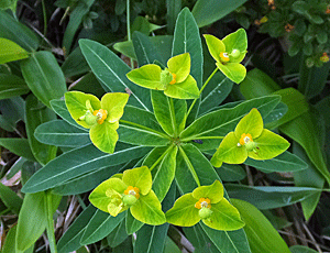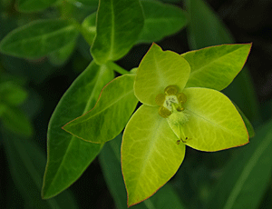 | ↑ これは、苞葉が2枚・腺体はオレンジ色 これもハクサンタイゲキ? |