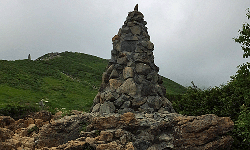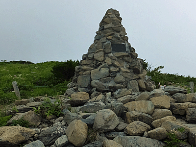 | ↑ 石神井(しゃくじい)ケルン 13:29 ポツリ・ポツリと雨が降ってきた 大降りにならない前に山荘に着こう~と スピードを上げた |