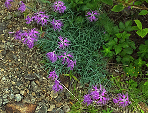 | タカネナデシコ:ナデシコ科 カワラナデシコの高山型 『花びらの先が細かく避けているのが特徴』・・・と 2000m近い場所なので、タカネナデシコとした |