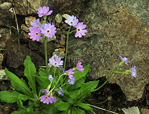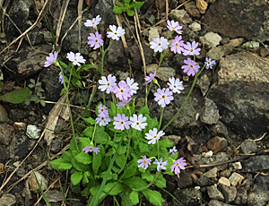 | ハクサンコザクラ:サクラソウ科 この辺り、雪が遅くまで残っていた所らしい 他では見かけなかった |