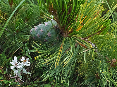 | ハイマツ:マツ科 背丈に似合わず、大きなマツボックリがなっていた |