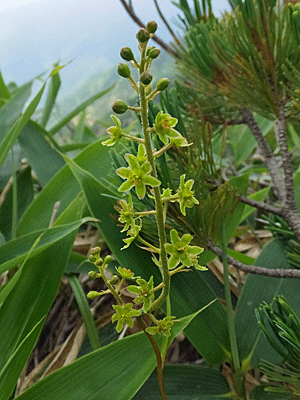 | ↑ タカネアオヤギソウ(かな?):シュロソウ科 シュロソウの仲間だが、緑っぽいも花 |