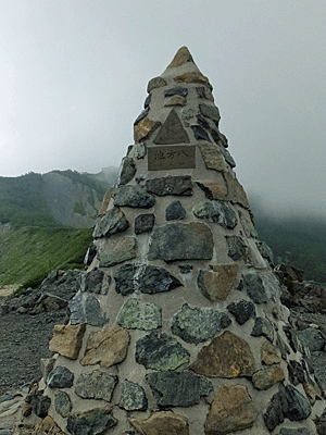 | 八方ケルン 2035m 11:27 ここでいつも後ろを振り返るのだが、 今日は曇っていてな~んにも見えないので、残念! |