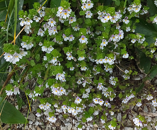 | ミヤマコゴメグサ:ゴマノハグサ科 大きな塊りりになって咲いていた 名前札は「ミヤマコゴメグサ」と書いてあった |