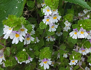 | ミヤマコゴメグサ:ハマウツボ科 コゴメグサの仲間も、そっくりさんがあって、判別が難しい コバノコゴメグサ・ホソバコゴメグサ・コケコゴメグサ 「白馬岳・八方尾根 花の旅」図鑑では、ミヤマミミナグサになっている |
