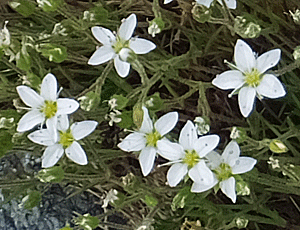 | ホソバツメクサ:ナデシコ科 傍の名前札に「ホソバツメクサ」と書いてあった |