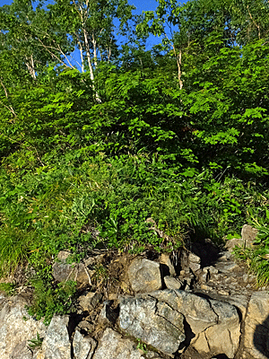 | 「下ノ樺」入口 5:56 ここから樹林の中に入り、花も変わってくる |