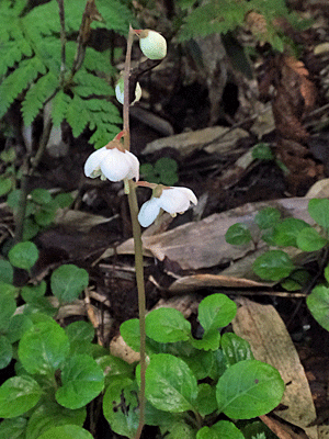 | イチヤクソウの仲間:ツツジ科 葉っぱの陰に隠れて咲いていた |