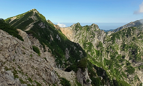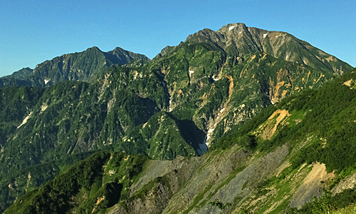 | 天狗の頭や白馬鑓も、角度を変えて迫ってきた |