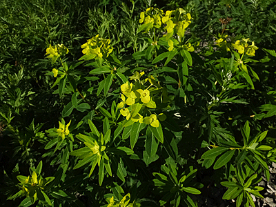 | トウダイグサの仲間 トウダイグサ科とは分かるが、 さっきのハクサンタイゲキ(?)とは雰囲気が異なっている 鮮やかな黄色と緑の配色が目を惹いた |