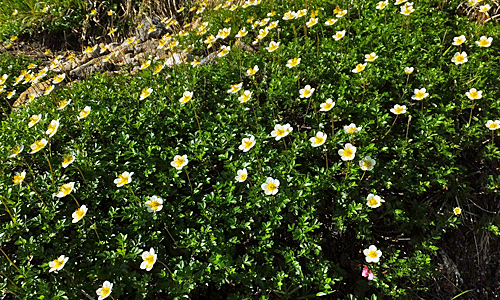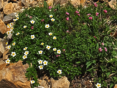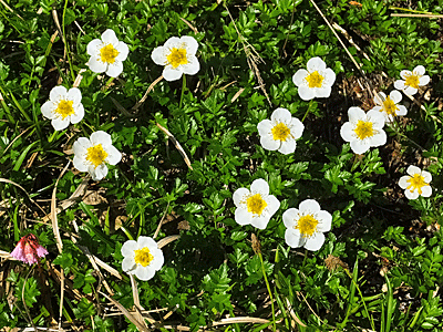 | ミヤマキンバイ:バラ科 ピンクは、コイワカガミ やっぱり、雪田の名残り |