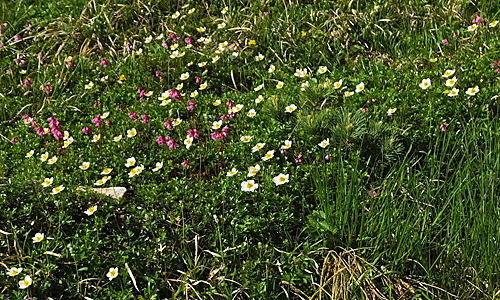 | チングルマ:バラ科とコイワカガミ:イワウメ科の群生 |