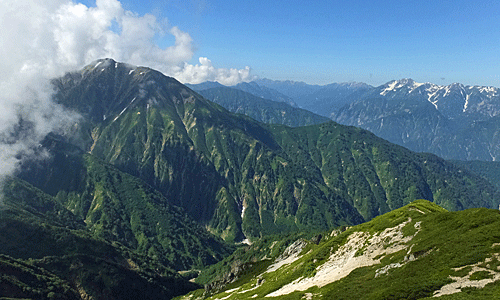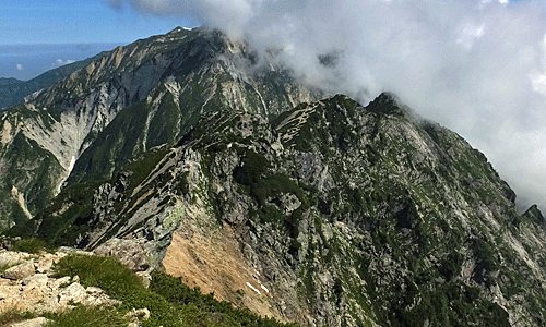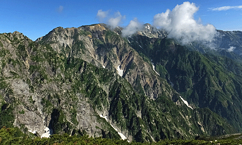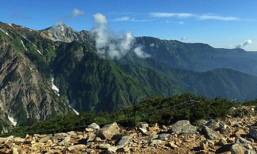 | 天狗の頭に雲がかかってきた その左が不帰の嶮 |