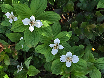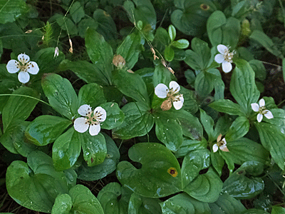 | ゴゼンタチバナ:ミズキ科 ハイマツの下に咲いていた |