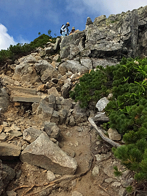 | 狭くて急で、岩ゴロゴロとガラガラなので要注意 |
