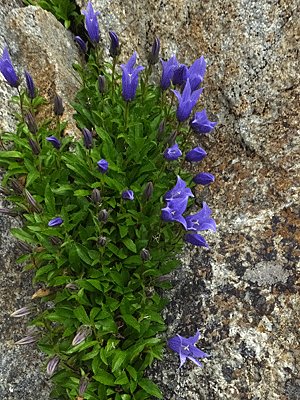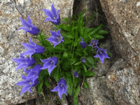 | チシマギキョウ:キキョウ科 岩の隙間に頑張って根を張ってるんだね! 下右 毛深いのが特徴 イワギキョウは、もっと小型でつるんとしている |