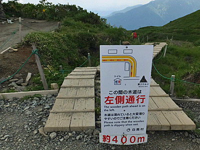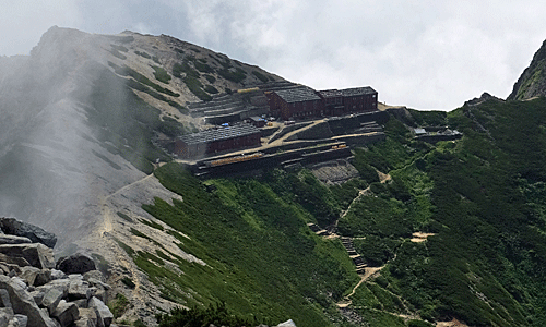 | 唐松頂上山荘にも・・・ 山荘下のジグザグはテント場へ行く道 |