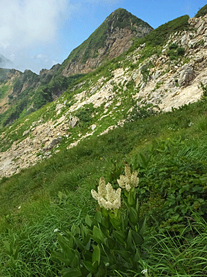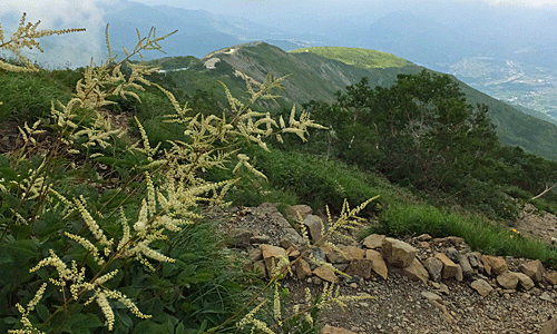 | ショウマの仲間:バラ科 そのずっと向こうに、八方池が見えた |
