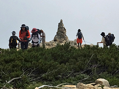 | 7/28(金) 唐松岳へ 八方池山荘 八方池 扇雪渓 丸山ケルン 唐松岳 丸山ケルン 八方池山荘 八方駅 白馬駅 松本駅 1時間以上待機 木曽福島駅 多治見駅 |