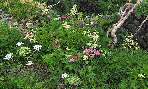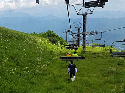 | 足元や左右の花を見ながら、 リフト2本乗り継いで兎平へ リフトから撮った花の写真 ↓ |