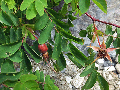 | タカネバラ:バラ科 花は終わり、赤い実がなっていた |