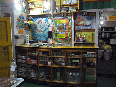 | ダイニング ここのダイニングの隅にある売店で、 ティッシュを購入したが 縦10cm・横6㎝・厚さ2cm程の透明袋に入った紙が 1パック150ルピー(約150円) 高いなあと思いながらも、 紙を惜しげもなく使う国とは違うかも・・・と思い 5パック750ルピー(約800円)を支払った 何といっても鼻水に困っていたから・・・ |