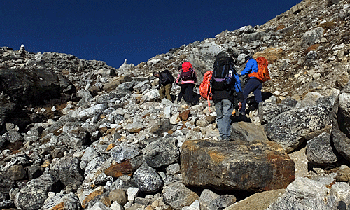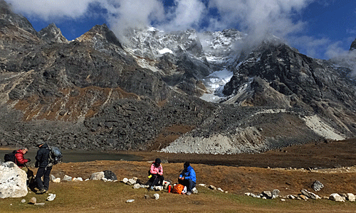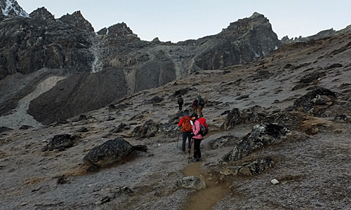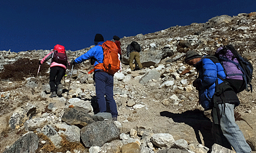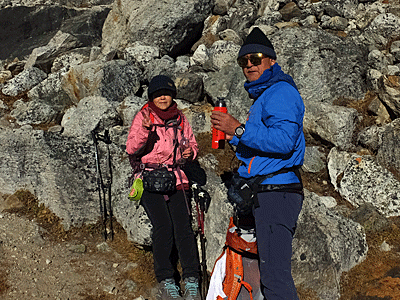 | 新潟からのご夫婦 奥さんの還暦の記念に、 ゴーキョ・トレッキングに来たとか ご主人の強い要望があったとも聞いた |