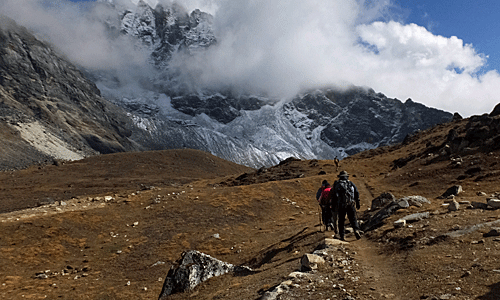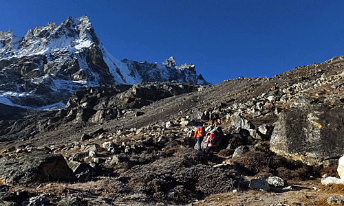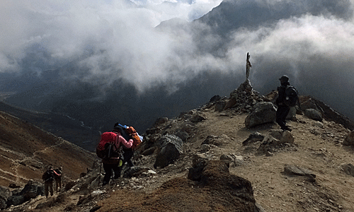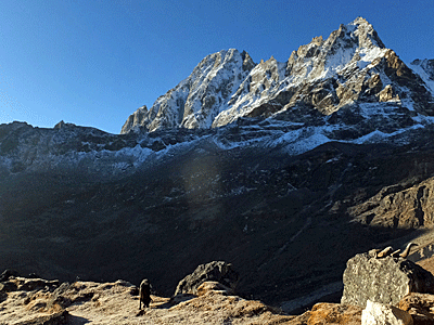 | 何度も振り返って ドゥードポカリとエヴェレストと、チョラツェとタウチェの 名残を惜しんだ 峠を越えればもうこの景色は見えない・・・ |