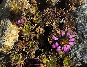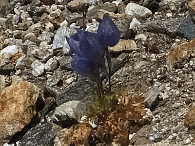 | やっと石段が無くなるころ、 朝原さんから、「ブルーポピーが咲いていますよ~」の声 足元ばかりを見て、周りを見る余裕がなかった・・・ なるほど、色が残っていた |