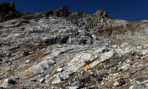 | 「あの氷河湖を回り込んだ所」・・・とは聞いたが 予想以上の道のりだった |