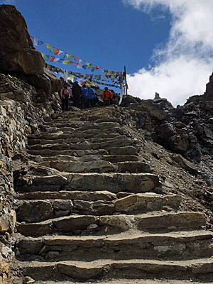 | 後ろを振り返ってパチリ タルチョのある所が、レンジョパス ここから下りなので、自分でザックを担いだ |