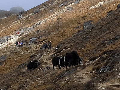 | 15:25頃、 登山道のすぐそばにヤクの群れ 目を合わせないよう、静かに静かに通り過ぎた |