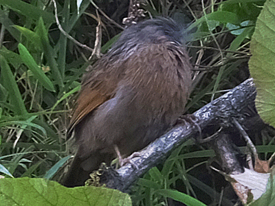| バサバサッと音がして、鳥が飛んできた スズメよりちょっと大きめ 紫色の尾の長い鳥も飛んできた (ピントが合わず、ボツ!) |