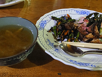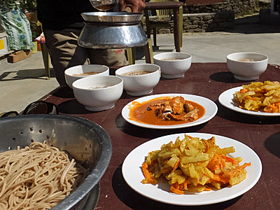 | メニューは、天ぷらそばと魚の缶詰 13:15頃出発 ルクラは、もうすごそこ |