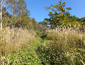 | 同行者は、蝶々深山経由で車山高原のバス停へ 私は、男女倉山方面へ・・・と、別行動になった こちらはメインルートではないので、草深い細道 |