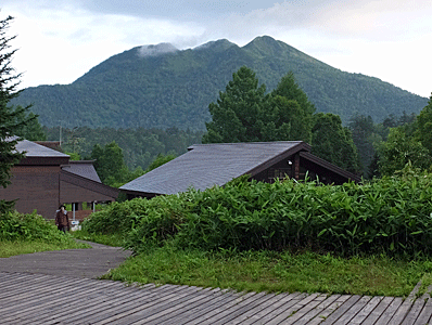 | 5:18 朝食前に朝の散歩 昨日、雨でちらっと見えただけの燧ケ岳 ![]() ↑ これは食堂から見た燧ケ岳 真ん前にくっきり見えた 思わず、パチリ 多分、一番右のポッコリが爼嵓(まないたぐら) それに向かって右の斜面を登るつもりだった 森林限界を過ぎていなかったが、 いったいどの辺りまで登ったのだろう? |