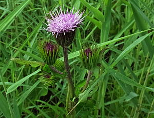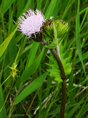 オゼアザミ:キク科 尾瀬沼周辺にあった湿地と比べ うんと花の数や種類が少ない |
