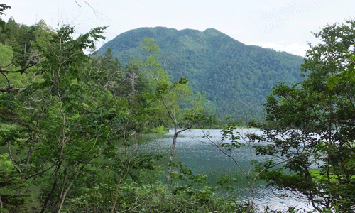 | 木々の間から燧ケ岳と尾瀬沼 |
