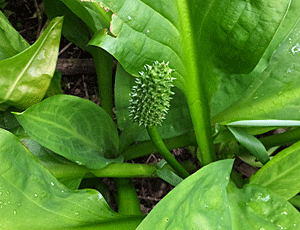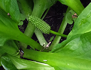 | ミズバショウ:サトイモ科 花は終わっていたが、若い実がのこっていた |