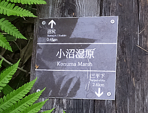 「小沼湿原」の表示板 8:40 小さい湿原かと思ったが そうでもなかった |
