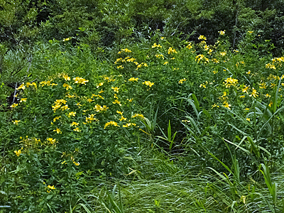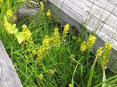 | 入り組んだ池塘 黄色い花は、キンコウカかな? キンコウカ科 |