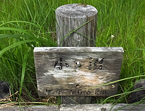 | 木道に指標が打ち付けてあった 7:02 『早稲ツ沢湿原(わせっさわしつげん)」だって |